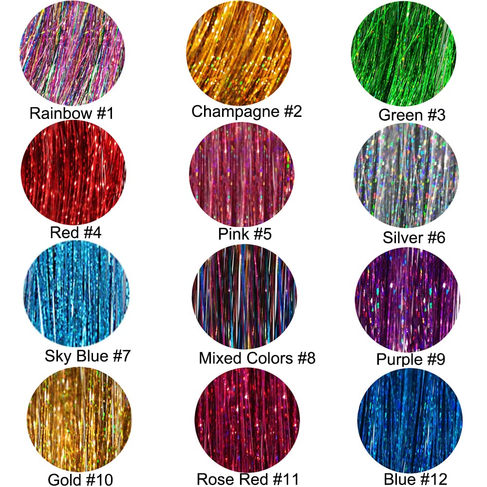 Amazon Com Dansee 48 Hair Tinsel 7200 Glitter Strands Extensions 12 Colors Set Sparkling Shiny Fairy Hair Dazzle Glitter Extensions Heat Resistant Synthetic Party Highlights Bling Hairpiece Kit Everything Else